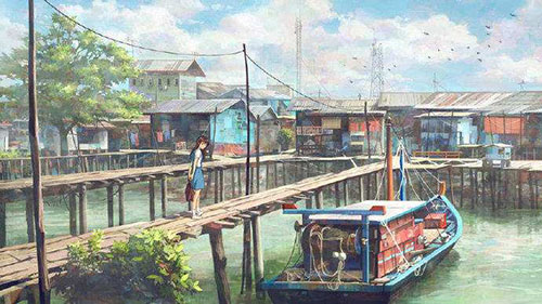 | 遠(yuǎn)方的天一絲絲微亮了起來。是魚肚的浮白,一層層淡淡地從啟明星邊的灰藍(lán)中褪了出來,淡金色的微光散在云邊。小趙拉開酒紅色的簾子,昂著頭,就那么靜靜地站著。絲簾垂在兩邊,框住了這嶄新的、朦朧的一切。 小趙的舊靴子在接連幾天的暴雨轟擊下終于開了膠。她拖著四下離散的鞋底往教室踱去,凌晨5點半,她熱愛這孤獨的時刻,這讓她覺得自己與別人不一樣。每個人都不甘平凡的吧,她想。雨水混著污水汩汩地在下水道悶聲流著,摻著河里凈化水質(zhì)用的噴泉傾灑的聲音,竟也顯得不那么陰暗了。只是下水道早已被不知名的塑料袋或是一些其他異物堵住了,豁口不夠呼吸,于是那些污水和其余發(fā)臭的垃圾一起,回旋上升,然后匯成一團(tuán)黃白色的液體緩緩浮上來。像是免疫時傾瀉出的膿液,昭示著克服感染的成果,或是被同化的結(jié)果。汩汩地流著,一層一層慢慢涌上來,似乎要把小趙吞沒。那些異物,不斷的,發(fā)黃的,淌著血液的,骯臟的,又是誰的?